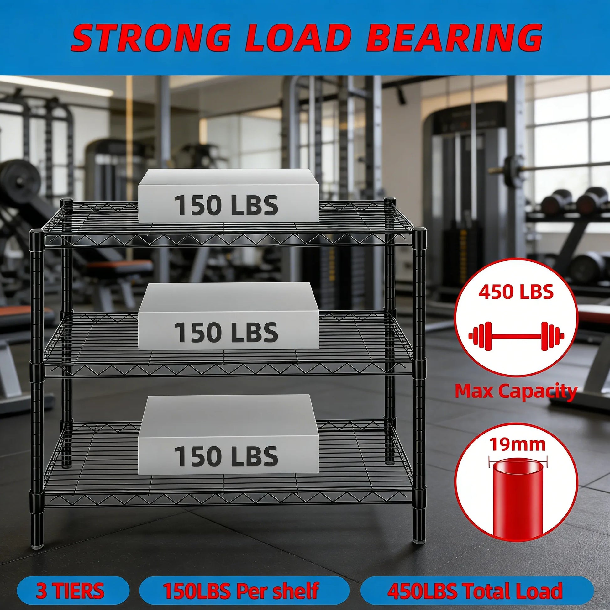 Quality Materials & Wide Application – Made from industrial‑strength steel with advanced coating, this 3‑tier wire rack is durable and versatile. It fits well in offices, kitchens, bedrooms, bathrooms, laundry rooms, storage areas, garages, exhibitions, hotels, supermarkets, and more.