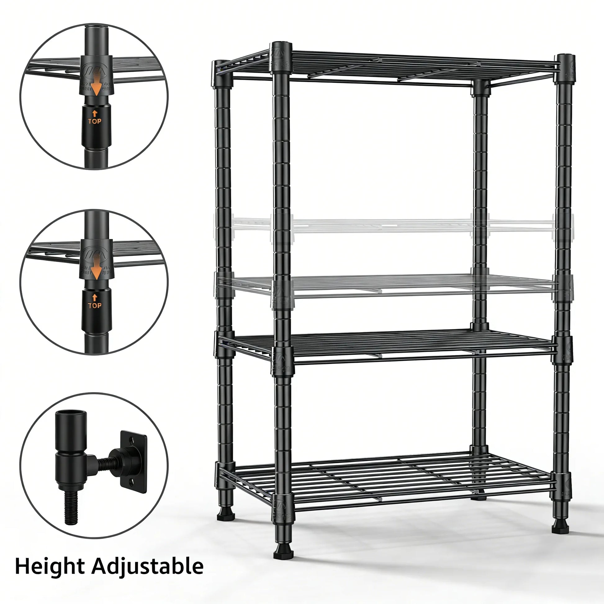 Flexible Height Adjustment – Shelves can be adjusted to different heights to fit items of various sizes, giving you the freedom to customize your storage layout.
