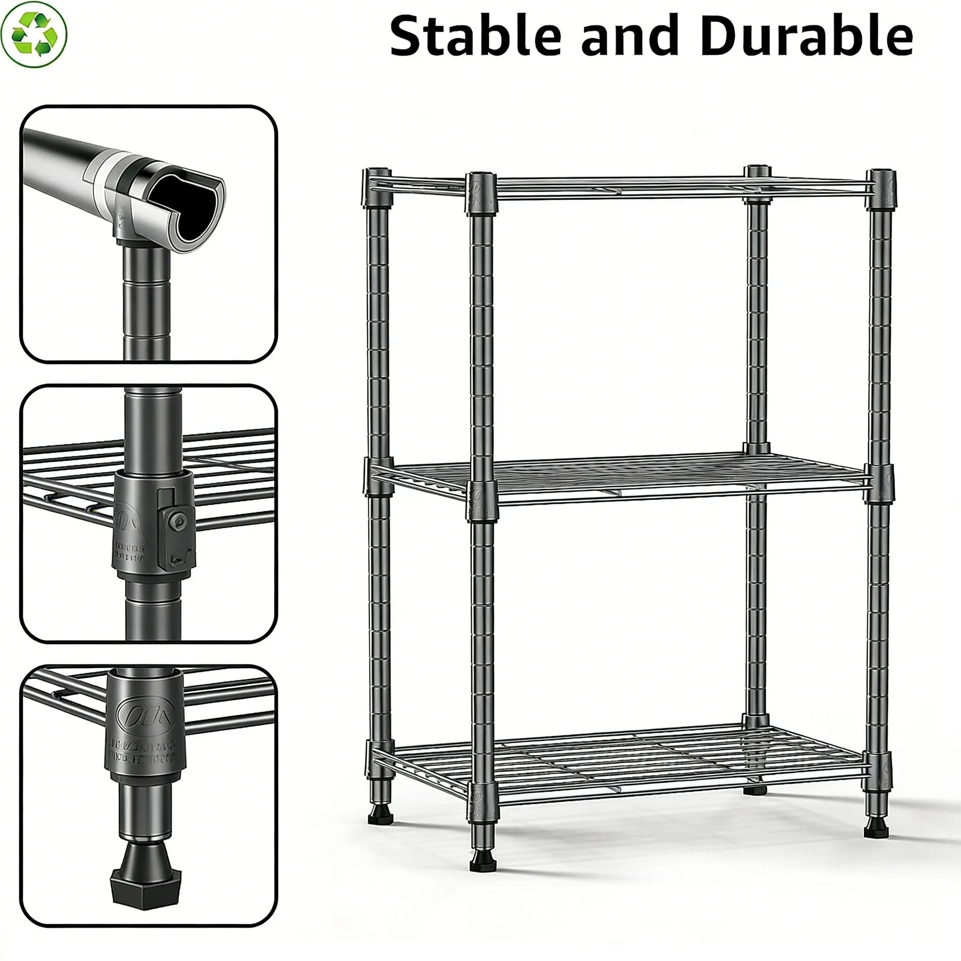 Strong and Durable Build – Made of superior carbon steel with 15.9 mm thick tubing, this metal shelving is sturdy and long-lasting. Each shelf holds up to 150 lbs, and the entire unit can support up to 450 lbs.