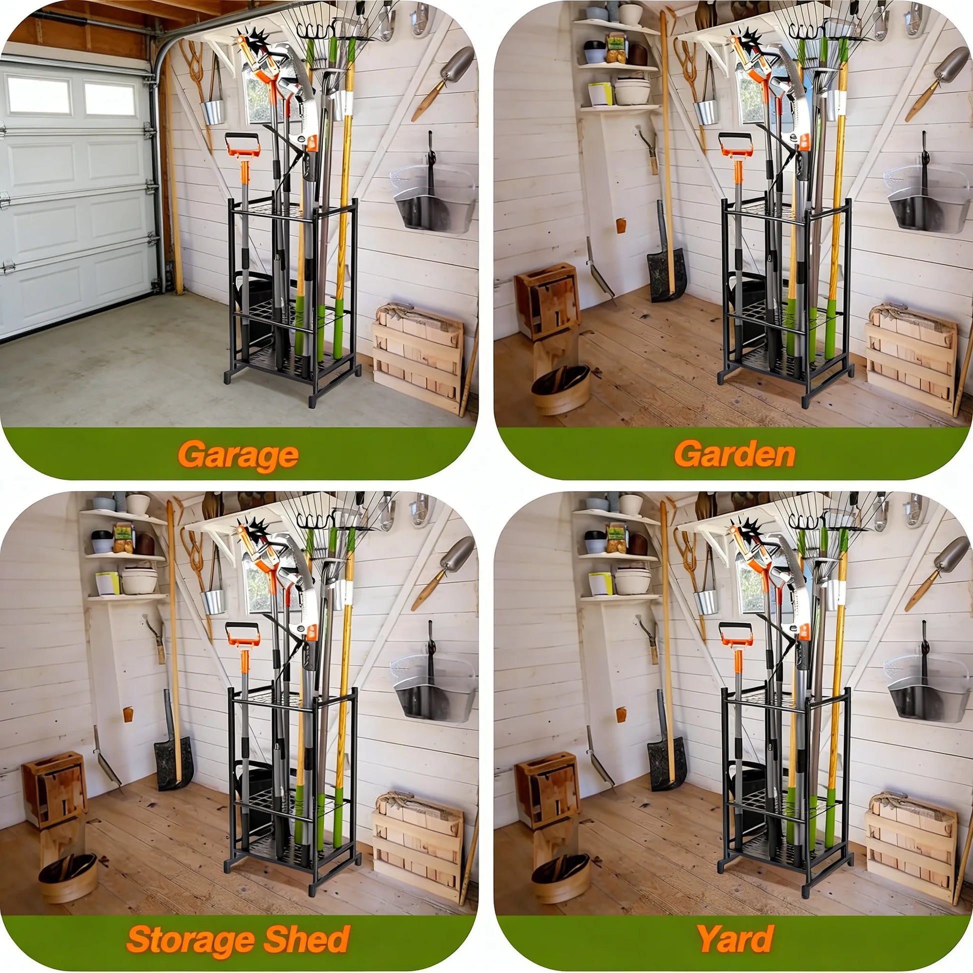 Fits Multiple Locations – With a compact square shape, this organizer fits seamlessly in garages, gardens, sheds, backyards, and more. It supports systematic storage for gardening tools, yard equipment, and cleaning supplies—such as shovels, rakes, mops, and brooms—maximizing space and efficiency.